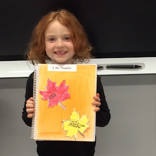 Today we practiced our cutting skills by cutting out two detailed leaves. We wrote on the leaves how we can show people we are thankful for them and what we are thankful for. They turned out very nicely!